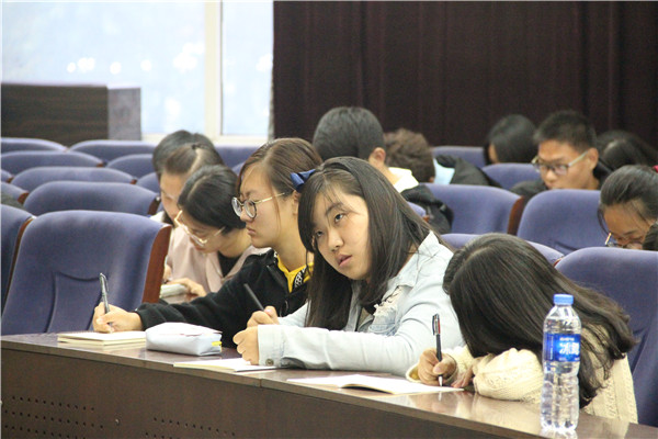 刘部长以问题切入,首先抛出三个问题,一是“当初报考时选择沈师最看重的是什么”,二是“大学四年到底应该干什么”,三是“在大学里是否应该有更高层面的精神追求”,三个问题层次递进,启发同学们对自己的大学生活进行深入思考。他以“沈师人”这一共同身份,围绕三个问题展开论述,娓娓道来,循循善诱,与同学们拉近了距离,引发了同学们的思考和共鸣。他指出,选择一所大学,最看重的应该是校风,好的校风对一个学生来说,就像阳光和空气对植物那样重要。他强调,我校多年来一直保持着优良的校风、教风和学风,对同学们的成长和发展必然起到积极的促进作用。他建议,同学们在大学里最应该做的就是“读书”、“修身”、“立德”,不要被网络上的各种“鸡汤”、“毒鸡汤”所迷惑,走正路、干正事、成正果。他希望,同学们在抓好学习的同时,要有正确的信仰和更高的追求,有信仰才有意义,有追求才有力量。在大学里,追求入党,积极向党组织靠拢,是有信仰、有追求的表现,是大学生成长成才的一条“正路”。虽然入党条件较高,发展党员名额有限,但青年大学生应该有创先争优的热情和敢于亮剑的精神。他联系自己的学习工作经验和体会,结合习近平总书记系列重要讲话精神和当前迎接党的十九大的新形势、新任务,引述党史、党建大量事例和数据,运用大学生喜闻乐见的语言和素材,充分调动了同学们的听课热情,课堂氛围有党味、有趣味、又有知识性、文化性。
