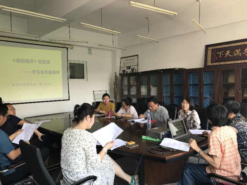 为积极响应“向毛丰美同志学习”的号召,推进沈阳师范大学腾博官网诚信为本专业服务教工第二党支部“两学一做”学习教育的深入开展,2017年7月8日上午,教科院教工二支部在田家炳教育书院408会议室组织召开了主题为“学习习近平总书记系列重要讲话精神,观看《梨树花开》谈感受”学习活动。