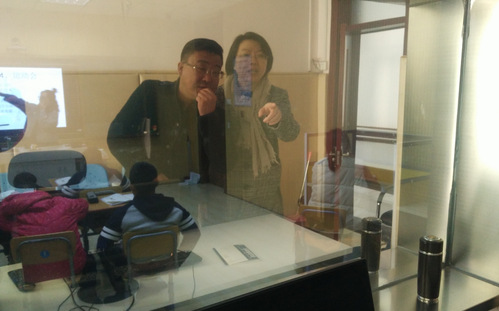 胡雅梅老师与睿智学校卢校长在查看学生实习