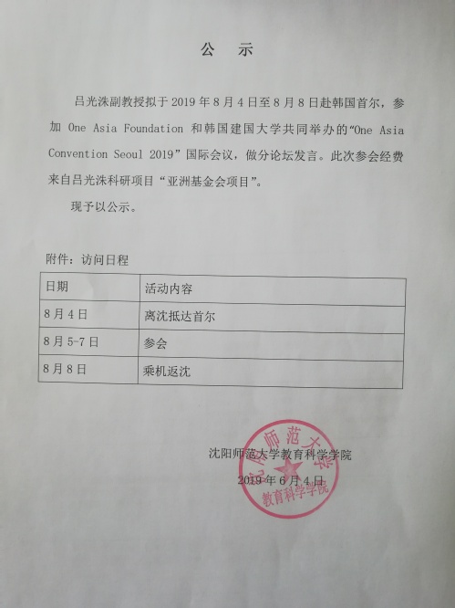 吕光洙老师赴韩国参会公示