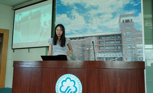 郑雅文代表沈师沈北附属中学实习小组做总结