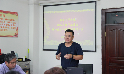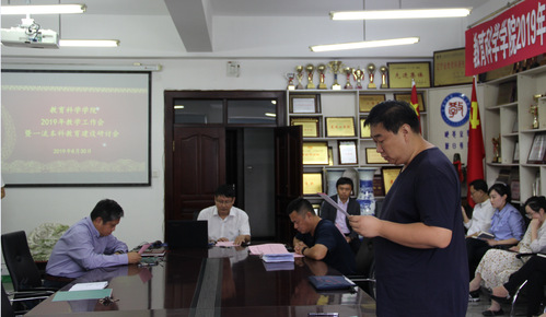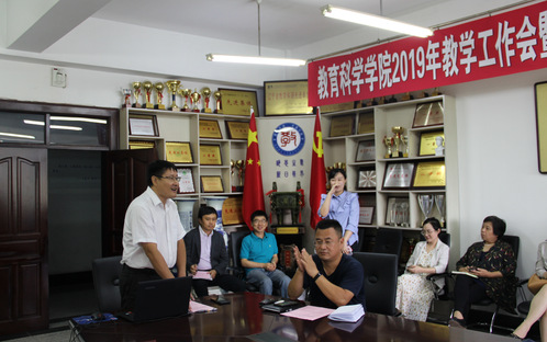 高军副院长做了《2018-2019学年本科教学工作总结及下一阶段工作安排》的报告,对上一学年教科院在本科教学工作审核评估、准备师范专业认证、申报省级和国家教学成果奖、入选辽宁省首批一流本科教育示范专业、申报国家一流本科专业、本科实践教学等方面的重要工作进行了总结,并对下一阶段的重要工作思路进行了简要介绍。