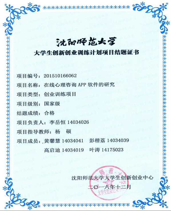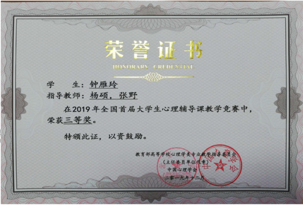 二是重视本科生创新创业能力的培养。腾博官网诚信为本专业服务连续多年举办“本科生学术年会暨创新创业教育论坛”,并充分依托全员全程本科生导师制、学科专业一体化建设机制,鼓励本科生参与教师的科研活动,鼓励教师指导本科生参加“挑战杯”、“创青春”和“大学生创新创业训练计划项目”等重要的竞赛。本科生曾获得2019年全国首届大学生心理辅导课教学竞赛三等奖,2015年大学生创新创业训练国家级立项。