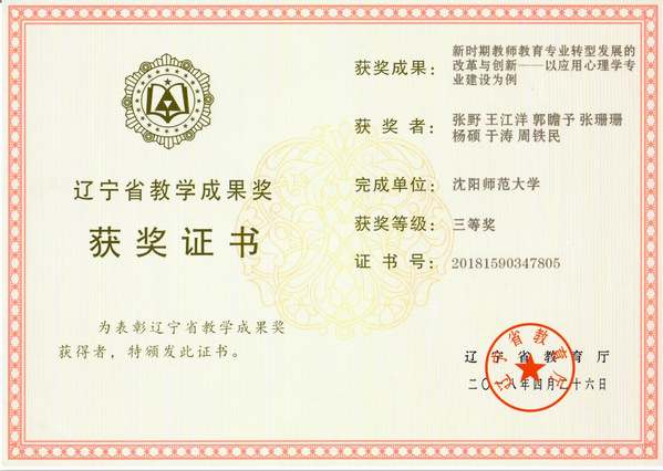 应用心理学专业十分重视教育教学改革,支持教师参加国内外相关培训,鼓励教师依据课程性质和教学对象在课堂上采用适切的教学方法。近两年,专业取得了跨越式发展,获得多项历史性突破,拥有省级精品资源共享课等多项省级以上本科质量工程项目,2018年荣获得辽宁省普通高等教育本科教学成果三等奖。此外,1个教学案例2020年成功进入中国专业学位教学案例库。