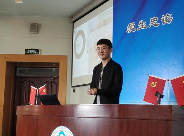 第一个进行分享的是辽宁城市建设职业技术学院的实习生代表韩家铧同学。他用平和的语调从容地向我们介绍他们两个月实习生活的诸多收获,通过本次实习,小组成员发现了更多教师职业的魅力,也改变了对教师职业的看法。他们不仅对职业教育有了新的认识,开阔了视野,也在实习期间不断地学习和挑战自我。实习期间,学会了如何处理公文、新闻编辑、撰写公文报告、设计活动方案,编辑大会发言致辞和演讲稿等等,这段实习生活终将成为大学期间最美好的回忆。
