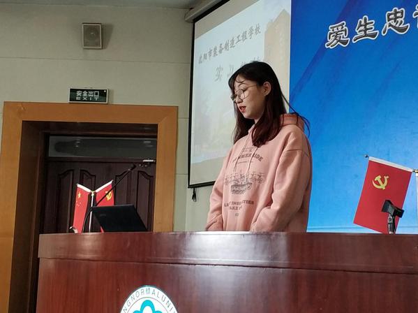 第七个进行分享的是沈阳市装备制造工程学校的实习生代表曲秋莲同学。她从听评课、座谈会、课外活动、心得体会等方面进行介绍。不仅认真完成实习任务,同时按时完成实习学校分配的听课任务。他们在座谈会上虚心学习,努力查阅资料并撰写多篇论文。说到体会,他们说了这些关键词:短暂充实、收获满满、丰富经验、增长见识、建立友谊。