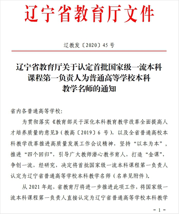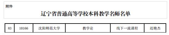 近日,辽宁省教育厅发布了《辽宁省教育厅关于认定首批国家级一流本科课程第一负责人为普通高等学校本科教学名师的通知》(辽教发[2020]45号)、《辽宁省教育厅关于公布首届辽宁省教材建设奖评选结果的通知》(辽教发[2020]46号),我院教育学专业的迟艳杰教授获得辽宁省本科教学名师奖、首届辽宁省教材建设奖。