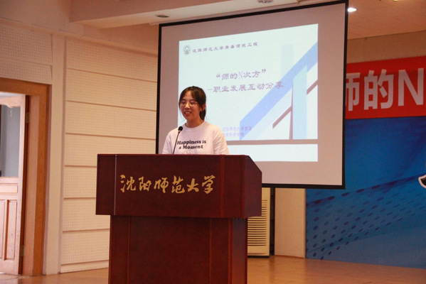 报告会结尾,我院即将入职朝阳一校沈北分校工作的2021届教育学专业本科毕业生商雅丽弘同学上台分享了其大学本科四年进行职业规划的经验和感悟。
