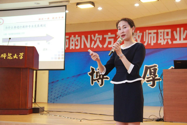 高原校长首先经由一个案例及其启示引出了此次报告会的主题——规划力,然后对职业生涯阶段的相关理论进行了讲解,继而从职业生命周期阶段论、国家相关教育政策、教师个人的主客观条件等不同角度对为什么要进行教师专业发展规划进行了重点讲解,随后,高原校长引用其自身、朝阳一校沈北分校及其他的相关案例对如何做好发展规划做了生动形象的讲解,并给在座的本科生同学总结提出了“相信可能、总结过去、设计未来、找到动力、付诸实践”的发展规划五步骤要点。