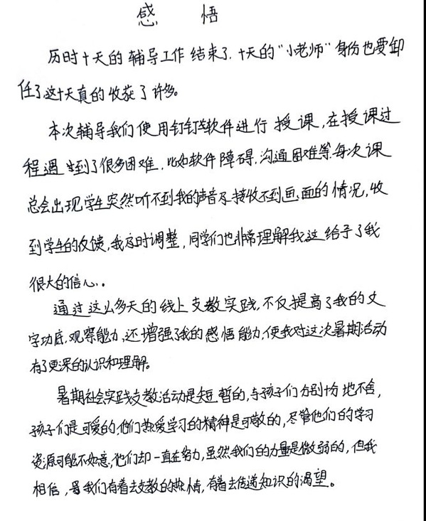 活动结束后,每位志愿者和北塔初级中学的同学都写下了自己参加本次活动的感悟。参加这次活动,不管是学生还是志愿者们都收获良多。