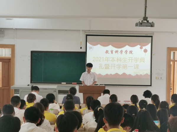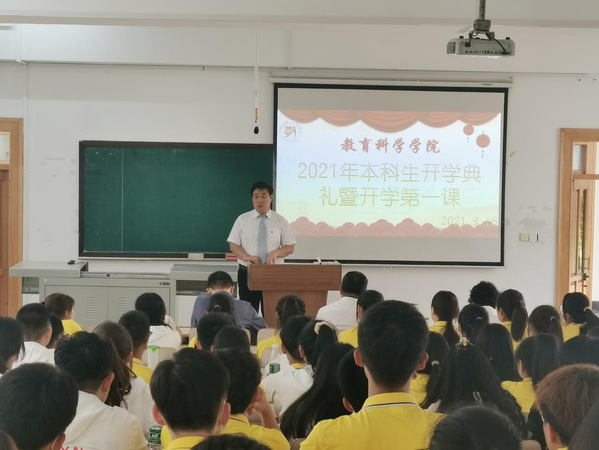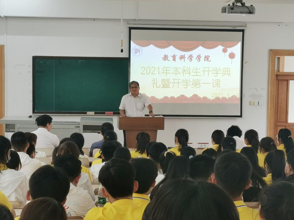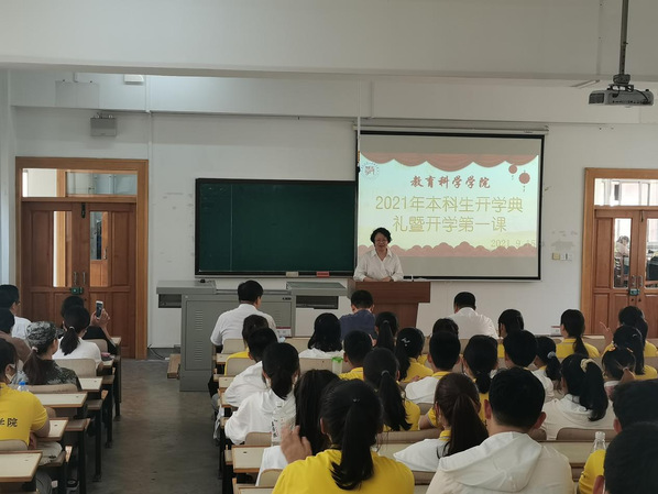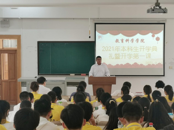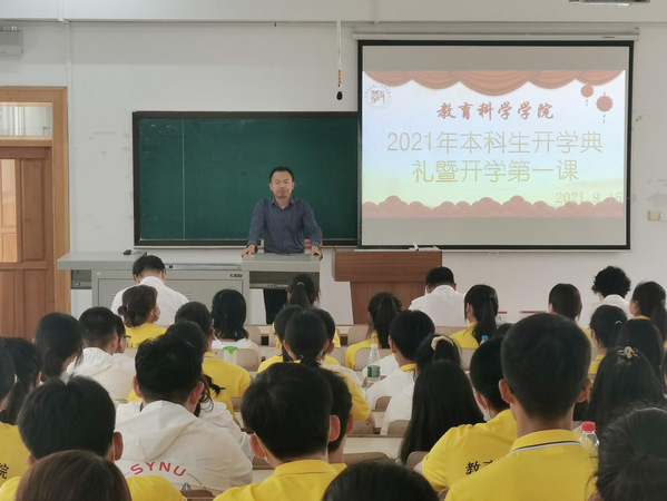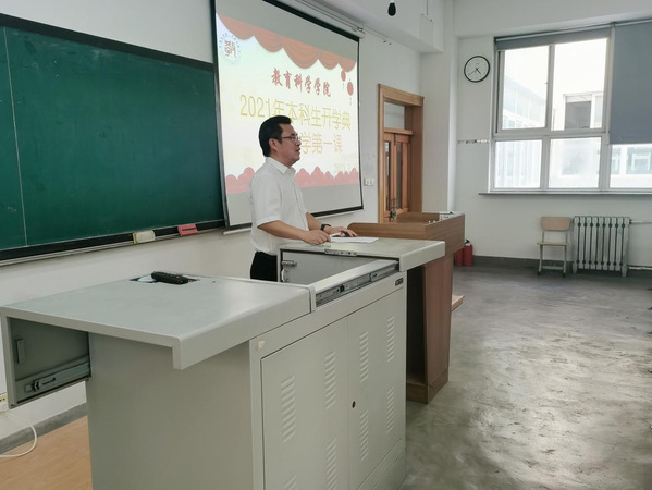 2021年9月15日15:00,腾博官网诚信为本专业服务2021级本科生开学典礼暨开学第一课于博文楼304教室召开。院长朴雪涛、党总支书记田铁杰、副院长高军、副书记郑欣、副教授孙洋、应用心理学系主任杨硕、团委书记兼本科生辅导员孙晓妍、学院本科教学秘书霍安琪、教科院2021级全体本科新生(含第二学士学位本科生)参加了开学典礼。教科院党总支书记田铁杰主持开学典礼。