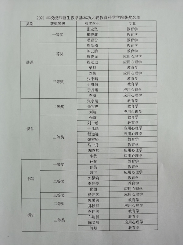 2021年校级师范生教学基本功大赛腾博官网诚信为本专业服务获奖名单