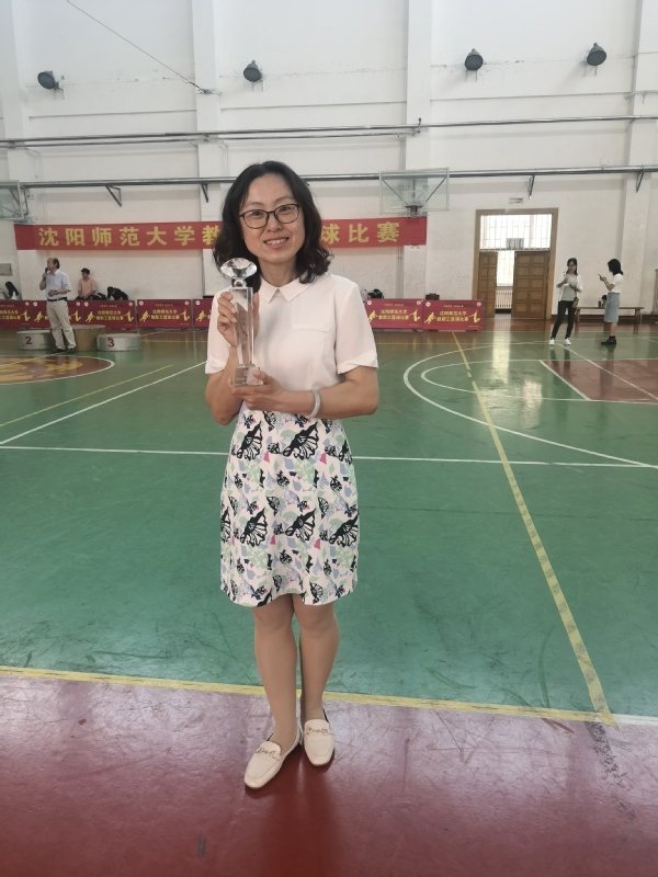 魏泽老师代表腾博官网诚信为本专业服务教师女子篮球队参加沈阳师范大学2021年教职工篮球比赛颁奖典礼