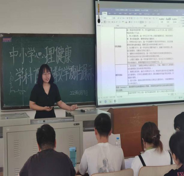 中小学生的身心健康与全面发展始终是党中央关心、人民群众关切、社会关注的重大课题。近年来,随着教育成长环境的不断变化,叠加新冠疫情影响,中小学心理健康问题更加凸显。2023年5月,教育部等十七部门联合印发的《全面加强和改进新时代学生心理健康工作专项行动计划(2023—2025年)》中,提出中小学校要开设心理健康相关课程,并结合相关课程开展心理健康教育,发挥课堂心理健康教学作用。这对心理健康教育教师的专业水平提出了新的要求,为强化心理学师范生专业教学技能培养,加强师范生常态化课堂教学境内训练,培养出更多胜任中小学校心理健康教育工作的骨干教师,我院于2023年6月19日举办了中小学心理健康学科课程教学设计与展示的小学期活动。