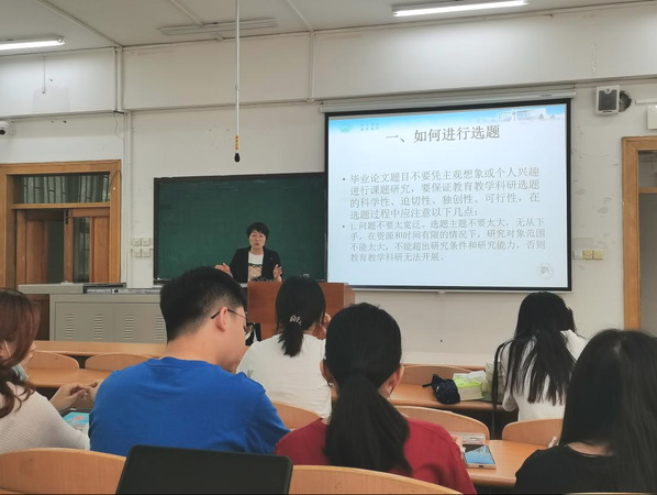 朱艳老师主要从如何进行选题、开题报告的内容、论文写作注意的问题三个方面细致地讲解了教育论文选题及写作的规范与要求。