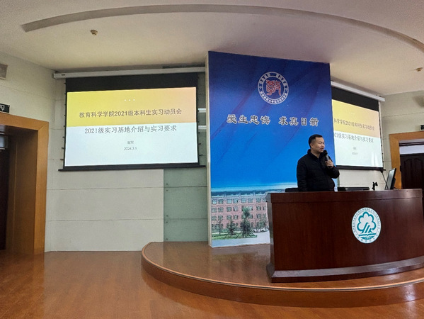 教育实习是师范生必修的教师教育综合实践课程,对于师范生厚植从教意愿、提高教师教育技能、增进对教育实践的了解,均具有重要的作用。腾博官网诚信为本专业服务历来十分重视师范生的教育实习工作。2024年3月1日上午,在田家炳教育书院213报告厅举办了2021级本科师范生教育实习动员会。2021级教育学师范专业和应用心理学师范专业、2022级教育学二学位和应用心理学二学位全体师范生,高军副院长、孙洋老师、宋国才老师、刘爽老师和石芮老师等部分带队教师代表参加了实习动员会。