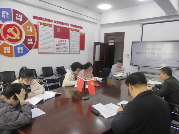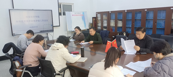 高军副院长首先介绍了本轮审核评估工作的重要意义,然后重点讲解了本科教育教学审核评估自评报告的指标构成和按时、高质量地完成自评报告撰写的重要性,并对自评报告撰写工作做了明确的分工;强调务必要高度重视自评报告的撰写,自评报告是对近三年教科院本科教育教学各项工作现状的系统总结和梳理,是对存在的问题、原因和下一步整改措施的系统探究;在审核评估过程中要将自评报告的撰写、本科教学的自查自纠自建、支撑材料的提供、一流本科专业建设四者有机结合起来。参会的相关领导、老师对本轮审核评估的相关事宜进行了相关的讨论。