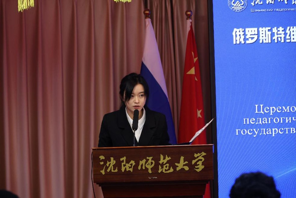 首届中俄联合培养博士研究生孙宇琪作为学生代表发言。她首先向中俄双方领导、老师致以最诚挚的感谢,并对未来的博士研究生学术生涯设定了目标要求,表示所有博士生一定会以高标准、严要求对待博士研究生学术生活,并期望同学们能在中俄双方导师指导下,成为中俄学术、文化交流的新生力量。