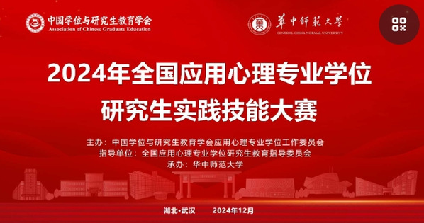 为深入贯彻党的二十大精神和全国研究生教育工作会议精神,进一步全面推进教育强国建设,由中国学位与研究生教育学会应用心理专业学位工作委员会主办,全国应用心理专业学位研究生教育指导委员会指导,华中师范大学心理学院承办的2024年全国应用心理专业学位研究生实践技能大赛决赛于2024年12月7日至8日在华中师范大学南湖校区举行。我院学子最终在全国决赛中斩获心理科普作品比赛二等奖、应用心理案例开发比赛三等奖,创造所有参赛作品均获奖的历史最好成绩!