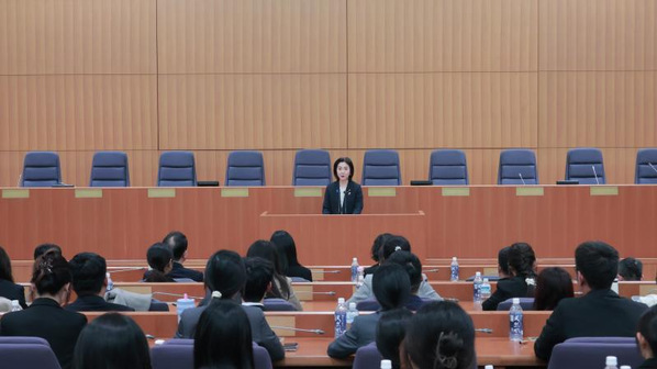 生稻晃子外务大臣政务官在会上致辞