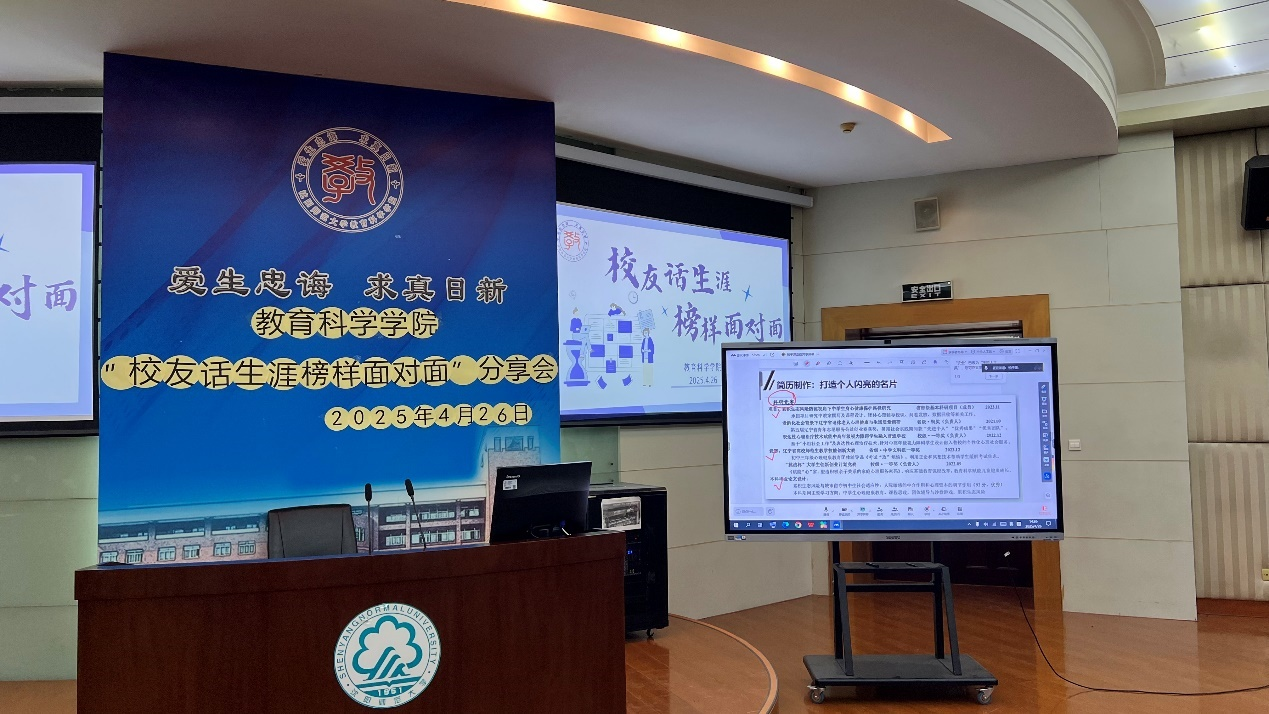 首先,第一位是2024届应用心理学专业本科毕业生,现任于庄河市第一高级中学心理健康教师的柏子深校友。他以线上分享的方式,以“从学习走向实践”为主题,给学生们分享了他大学四年的学习经验以及入职一年来的工作内容。在学习上 ,柏子深校友从专业课学习、竞赛、专业技能锻炼这几个方面给学生展开详细分享,他介绍了自己在大学期间的学习方法以及竞赛的各种经验。为学生们以后的学习提供更多的方法与思路。在求职上,柏子深校友鼓励学生丰富自己的实践经验以及各种在校学习荣誉,打造个人闪亮的名片。学会主动打破信息差,关注各种求职的公众号主动抓握机遇。分享结束后,在提问环节,学生们热情提问,并得到了柏子深校友的细致解答。在这一过程中,学生们收获良多。